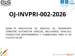 Invitaciones 2026E-75 PRESTACION DE SERVICIO DE TRANSPORTE TERRESTRE AUTOMOTOR ESPECIAL, INCLUYENDO VEHICULO, CONDUCTOR, MANTENIMIENTO Y COMBUSTIBLE PARA LA EIS CUCUTA SA ESP 19 marzo, 2026