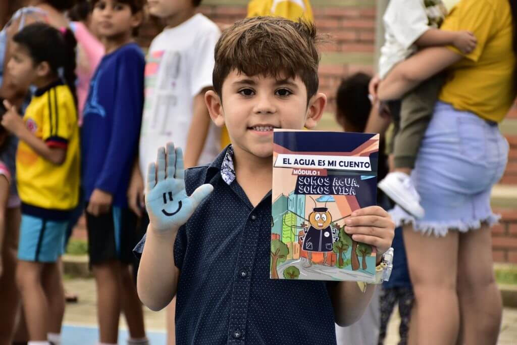 Al mismo tiempo, profesionales de trabajo social e ingeniería ambiental de las instituciones anteriormente mencionadas sensibilizan a través del juego a los más pequeños, quienes con sus sonrisas nos demuestran la importancia de seguir impartiendo pedagogía por medio de cultura con actividades como la lectura ‘El agua es mi cuento’ y la actividad ‘Somos amigos del agua’ con la cual sellan el compromiso por el agua, al pintar su mano de azul con una carita feliz.